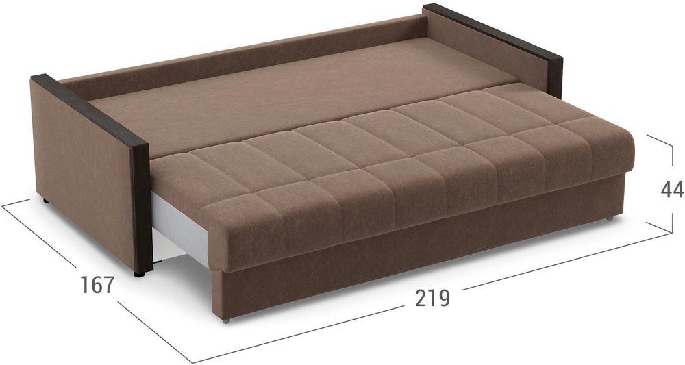 • В разложенном виде модель образует два ровных, цельных спальных места.