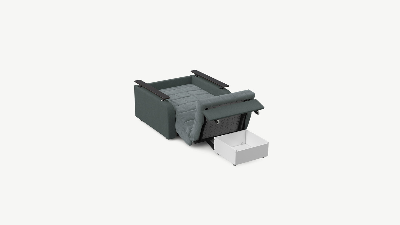 В качестве дополнительной опции к креслу-кровати предлагается бельевой короб, который устанавливается под механизм трансформации.