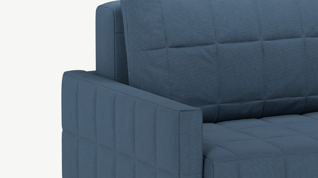 ДиванДиван MOON FAMILY 124 удачно сочетает вполне традиционный образ с веяниями моды. Так, простые лаконичные формы и стежка в квадрат, использованная для всей поверхности дивана, создают образ привычный и уютный, а вот мягкие подлокотники и приспинные подушки без утяжки — дань современным тенденциям.