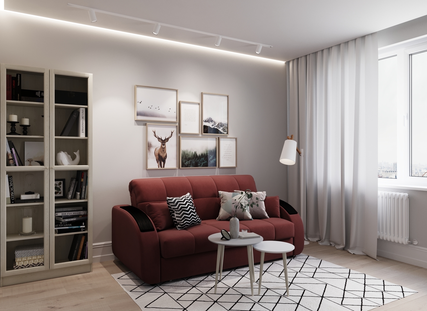 Спинка, выполненная в обивочной ткани, позволяет ставить диван в центре комнаты и зонировать пространство.