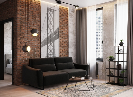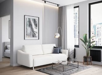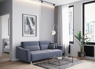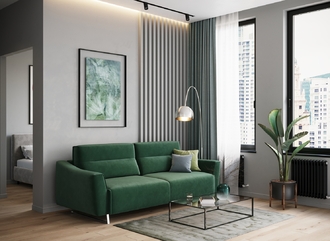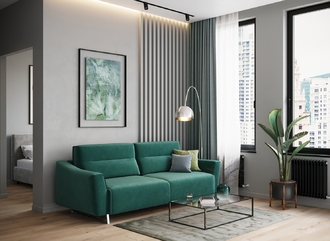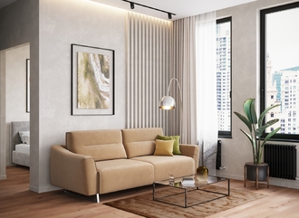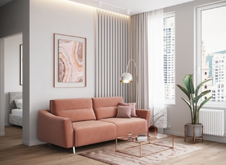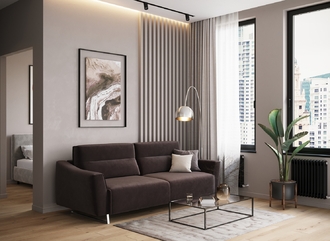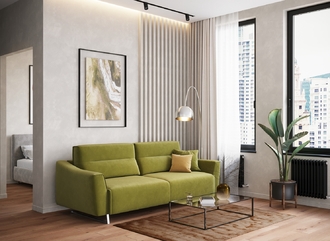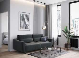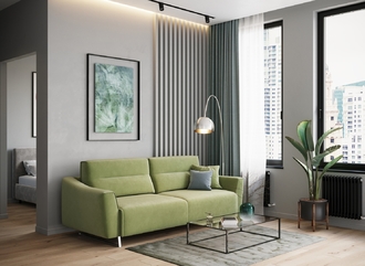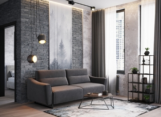 Механизм трансформации «Пантограф» подходит для ежедневного использования. Позволяет легко раскладывать и складывать диван, обеспечивая минимальный контакт дополнительных опор с напольным покрытием. Диван стоит на трапециевидных опорах, в то время как дополнительные остаются скрытыми, появляясь плавно и бесшумно в единственно нужный момент — при трансформации дивана в кровать.