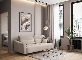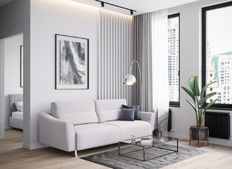 Благодаря высоким трапециевидным опорам под диваном проходит робот-пылесос и легко проводится влажная уборка, что поможет обеспечить чистоту и порядок в доме.