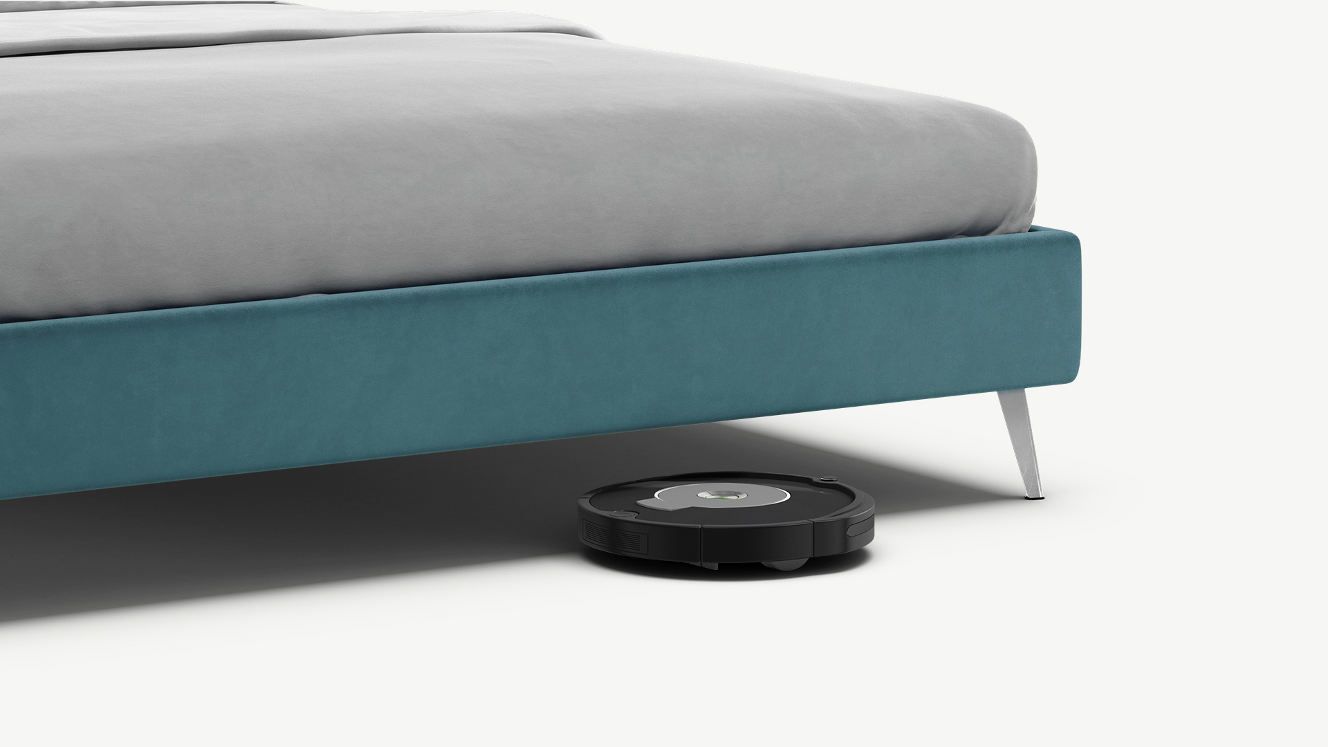 Высокие металлические опоры наклонной формы создают над полом достаточный просвет для движения робота-пылесоса, что помогает поддерживать чистоту и порядок в доме.