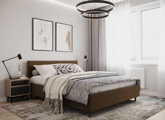 Фактура обивочного материала подбирается дизайнерами с учетом технологических и стилевых особенностей кровати.