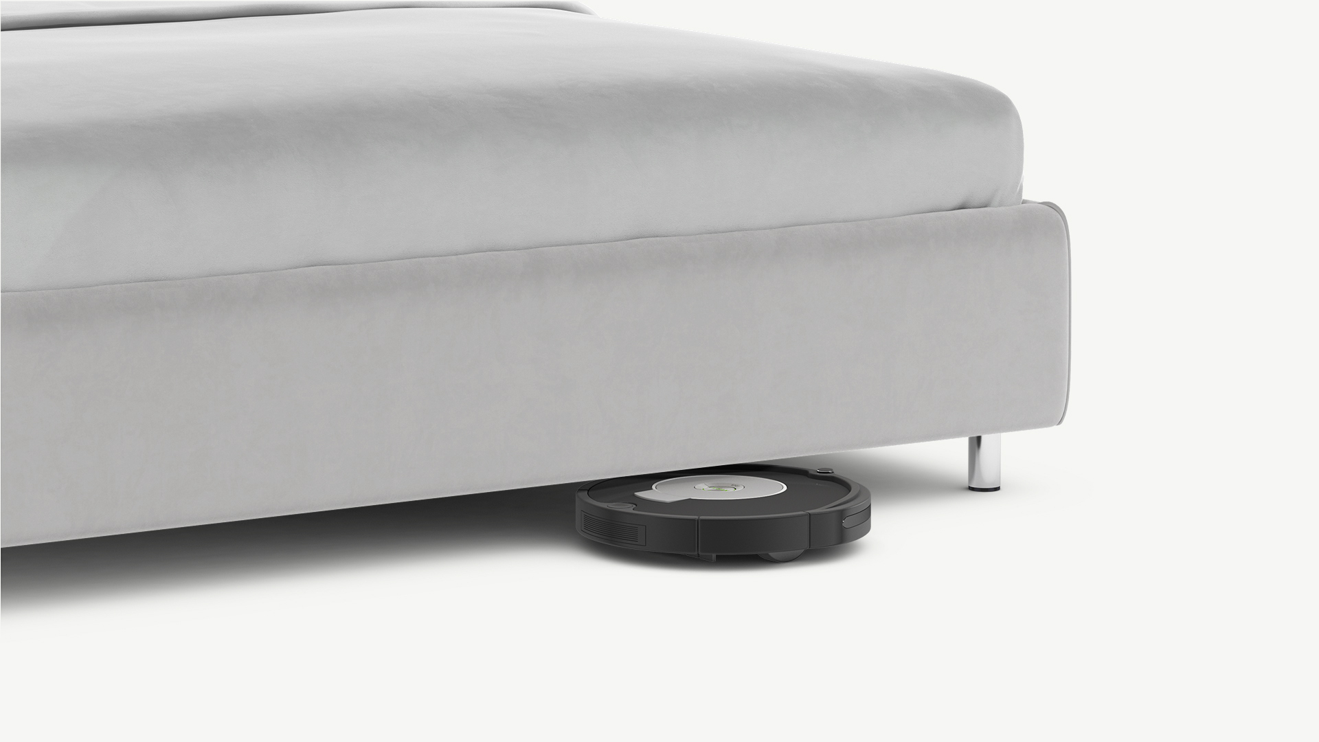 Высокие металлические опоры создают над полом достаточный просвет для движения робота-пылесоса, что помогает поддерживать чистоту и порядок в доме.