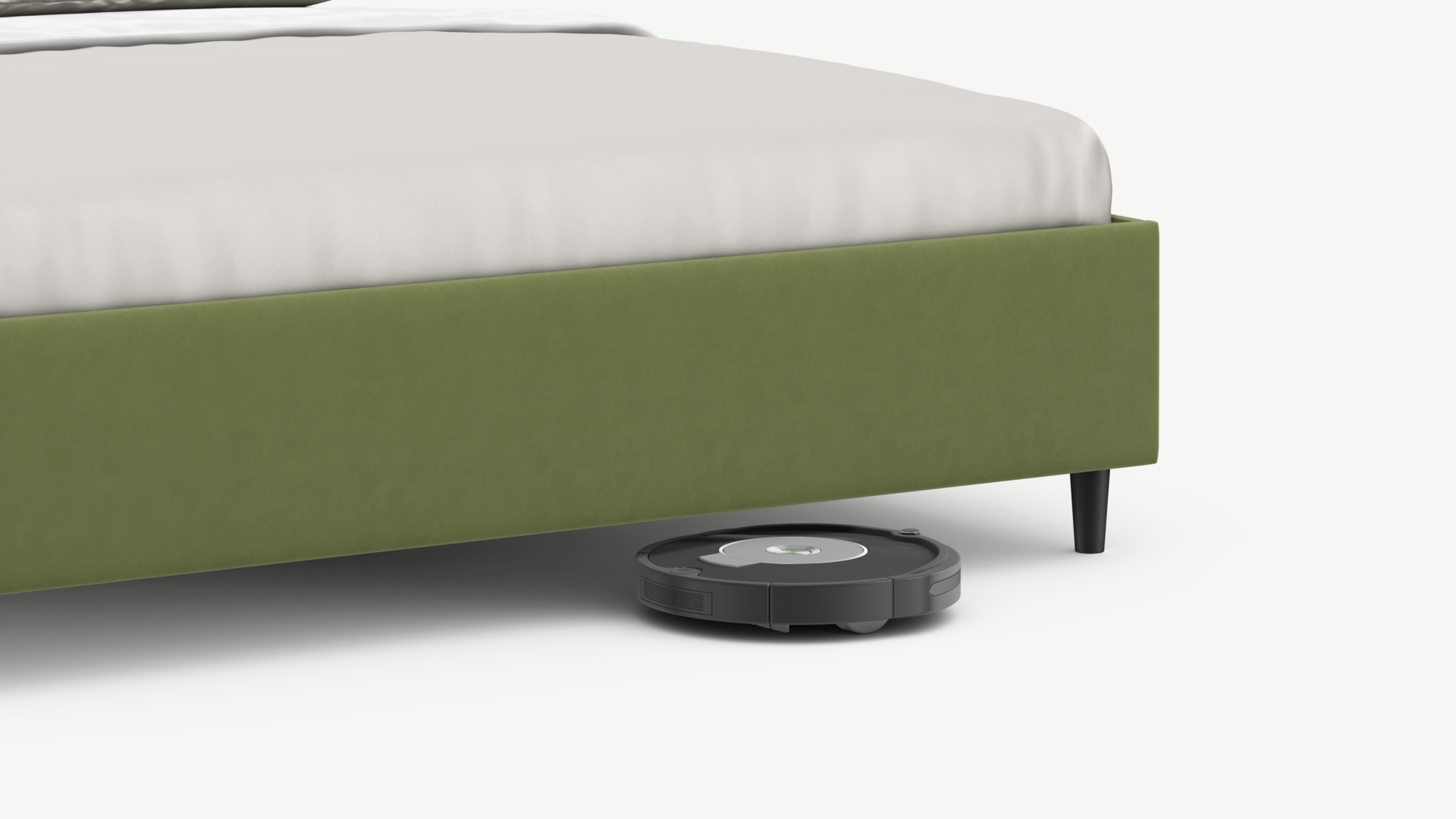 Благодаря высоким опорам под кроватью проходит робот-пылесос и легко проводится влажная уборка, что обеспечивает чистоту и порядок в доме.