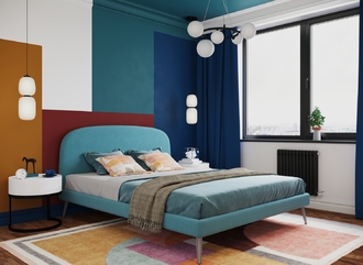 Фактура обивочного материала подбирается дизайнерами с учетом технологических и стилевых особенностей кровати.