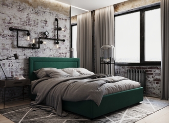 Фактура обивочного материала подбирается дизайнерами с учетом технологических и стилевых особенностей кровати.