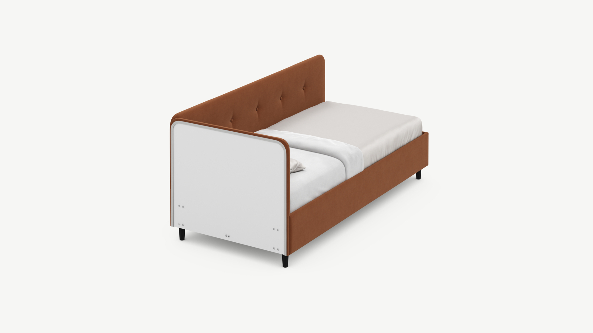 Кровать угловая с подъемным механизмомУгловая односпальная кровать MOON FAMILY 1253 с мягкой спинкой и изголовьем обладает округлыми формами, привносящими в интерьер нотки нежности. Изголовье, украшенное пуговицами, добавляет окружающему пространству шарм и уют. Высокие опоры придают кровати визуальной легкости, а также обеспечивают удобство во время уборки.
