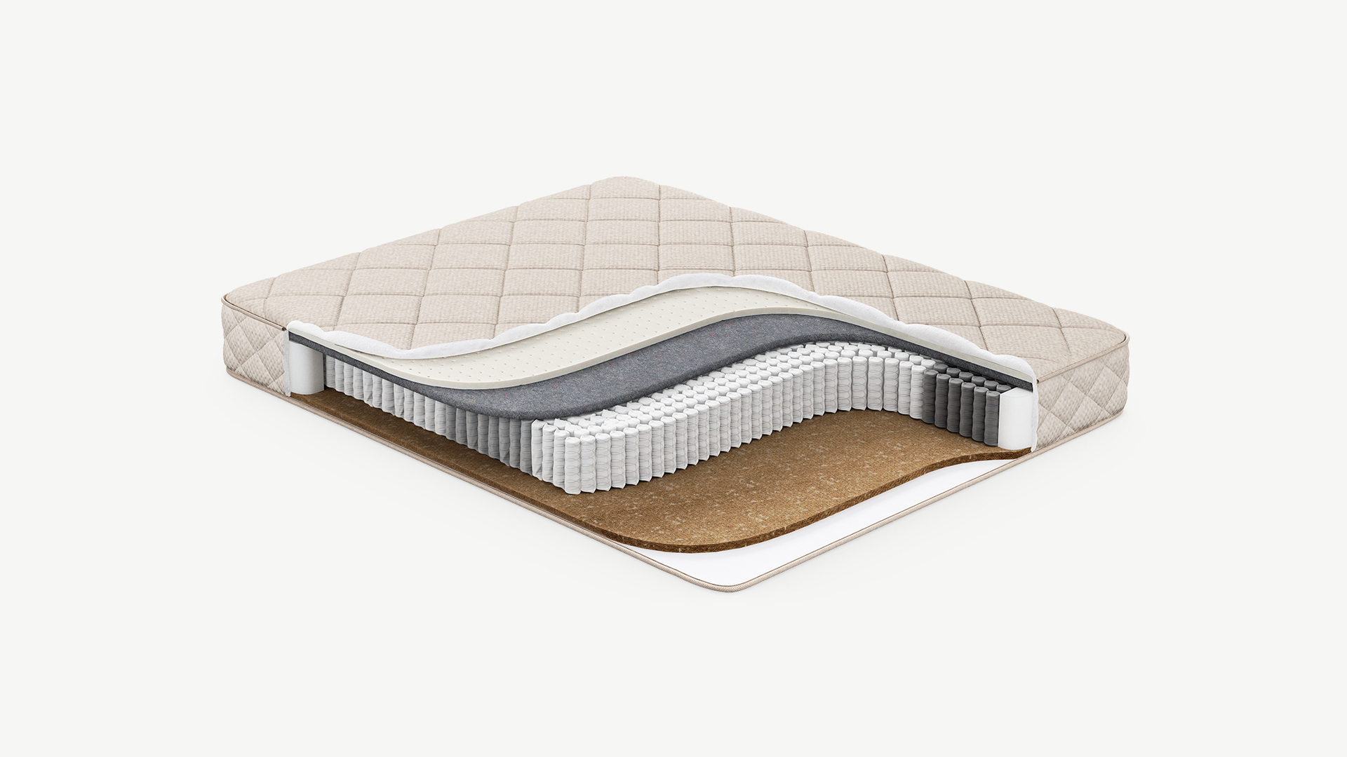 Надежно изолирует комфортные слои от соприкосновения с пружинным блоком и защищает материалы наполнения матраса от износа.