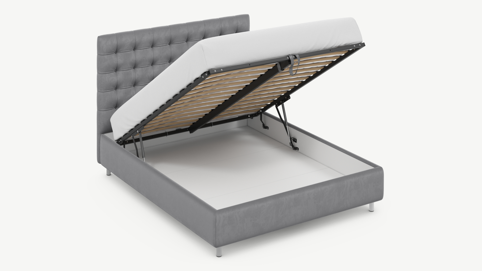 • Скрытая под основанием вместительная емкость без внутренних перегородок позволяет использовать всю площадь подкроватного пространства для хранения вещей.