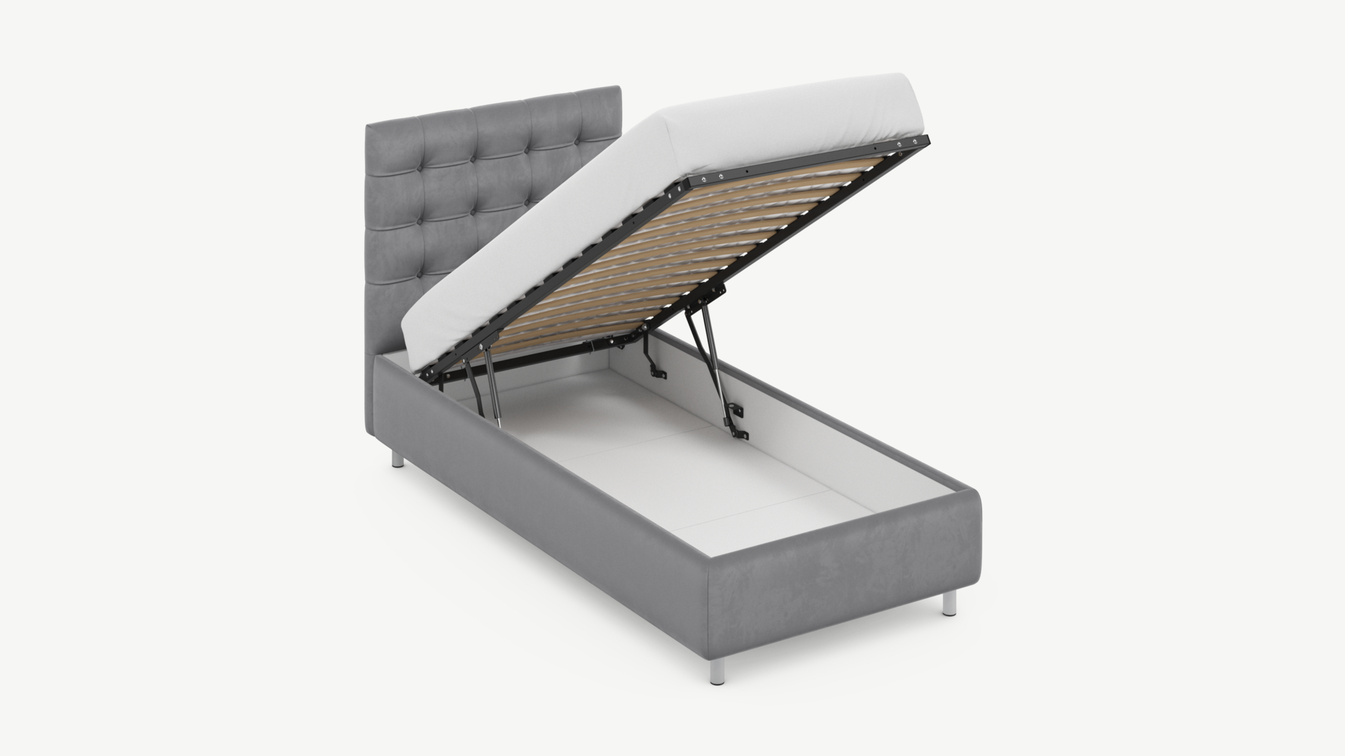- Скрытая под основанием вместительная емкость без внутренних перегородок позволяет использовать всю площадь подкроватного пространства для хранения вещей.