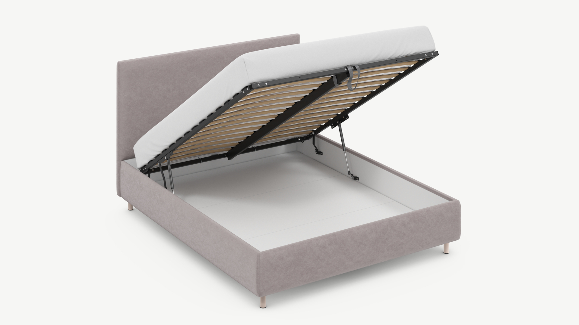 • Скрытая под основанием вместительная емкость без внутренних перегородок позволяет использовать всю площадь подкроватного пространства для хранения вещей.
