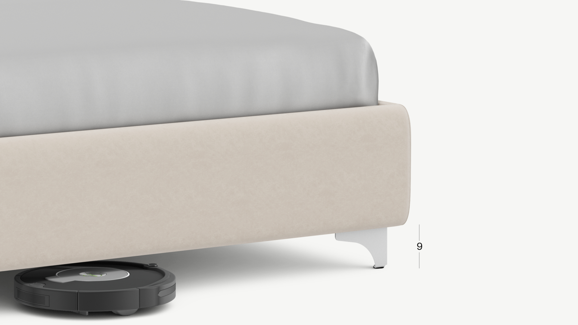 Высокие металлические опоры создают над полом достаточный просвет для движения робота-пылесоса, что помогает поддерживать чистоту и порядок в доме.