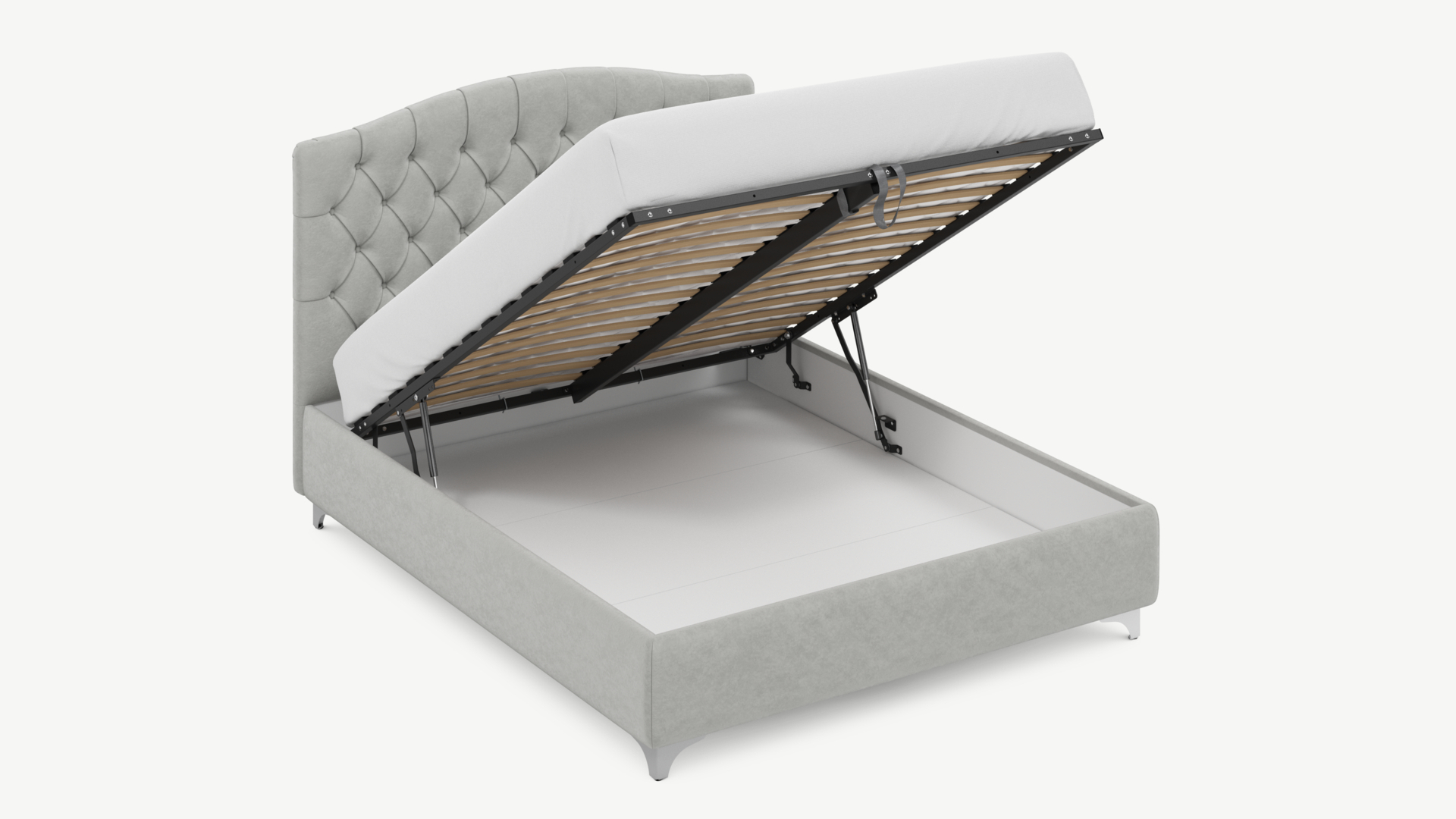 • Скрытая под основанием вместительная емкость без внутренних перегородок позволяет использовать всю площадь подкроватного пространства для хранения вещей.